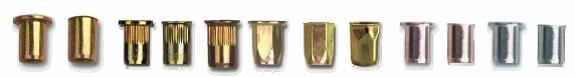 Rivet King®, Large Flange, Low Profile, Flat Head, Semi-Hex Knurled Body, Full Head Round Body, Full Serrated Head Round Body, Reduced Head Knurled Body, Wide Flange